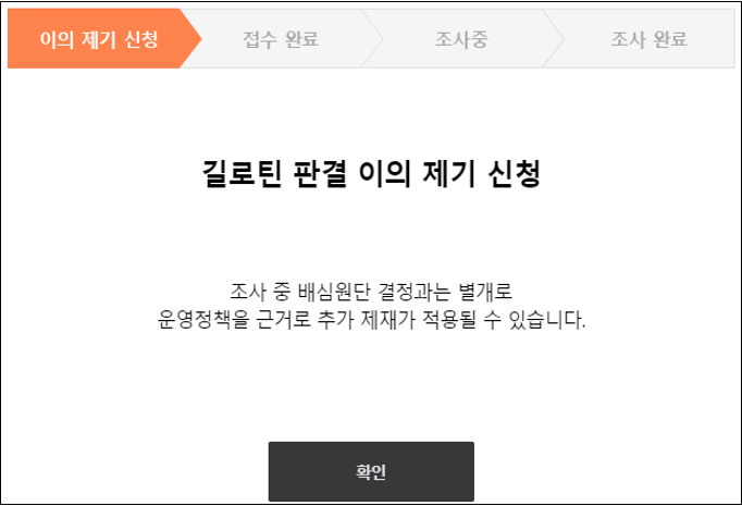 길로틴 시스템 의해 적용된 게임 이용제한에 대한 이의신청은