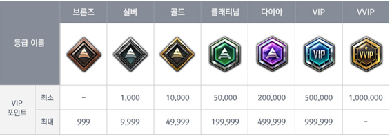 VIP 포인트를 획득하여 일반 ~ VIP 등급을 달성할 수 있습니다.