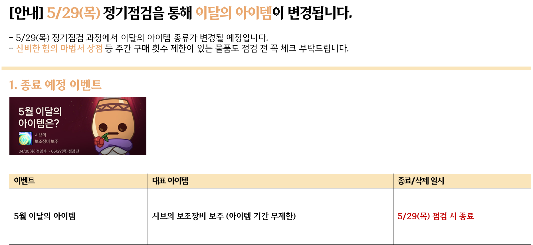 5/29(목) 종료 이벤트 안내