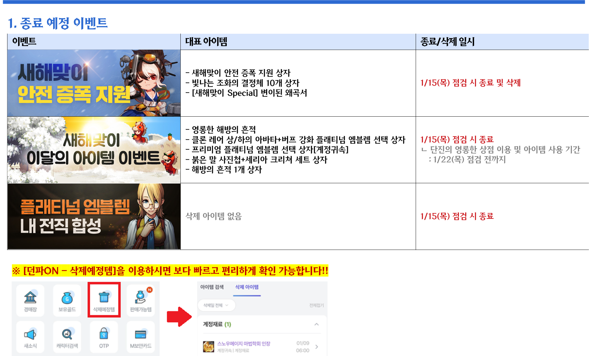 1/15(목) 종료예정 이벤트
